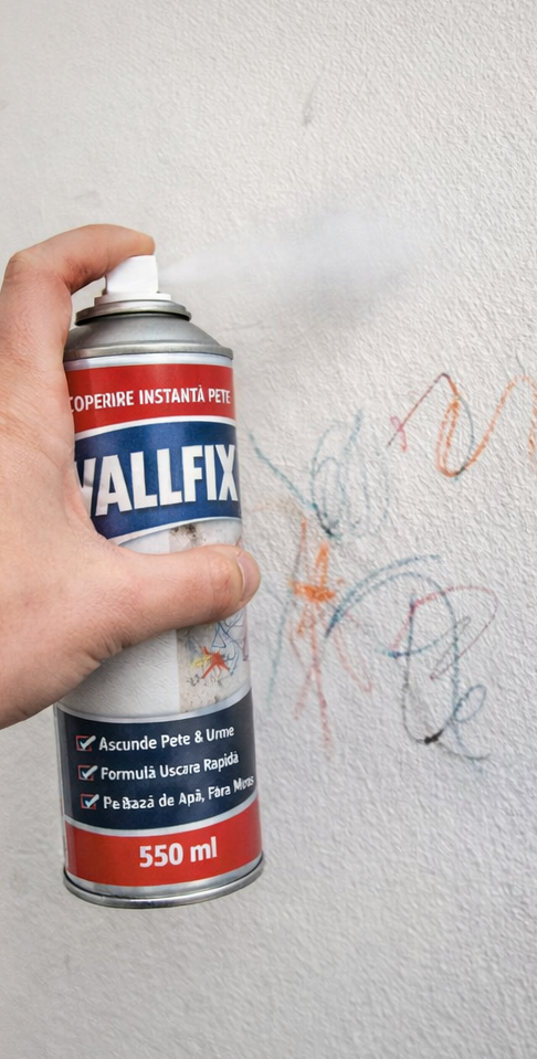 Acoperă mucegaiul, petele de umezeală, urmele de pantofi, desenele copiilor, zgârieturile și crăpăturile fine de pe pereți.